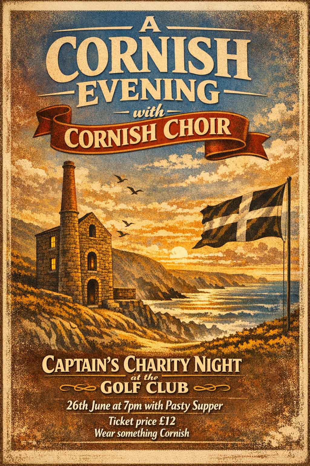 Join the Captain for a Cornish Evening with a Cornish Choir for his Charity Night at the Golf Club on the 26th June 2026.