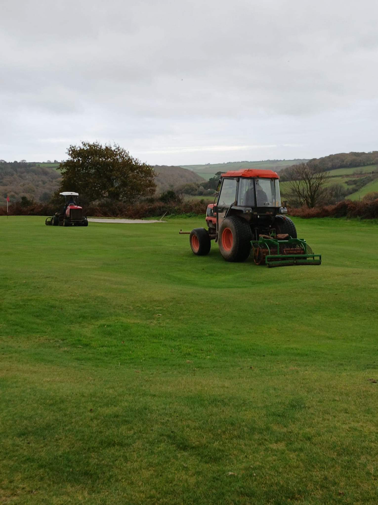 We began spiking the fairways last week and will continue throughout the winter. This process improves surface drainage, encourages deeper rooting, and helps release toxic gasses from the soil—setting the fairways up nicely for next season.